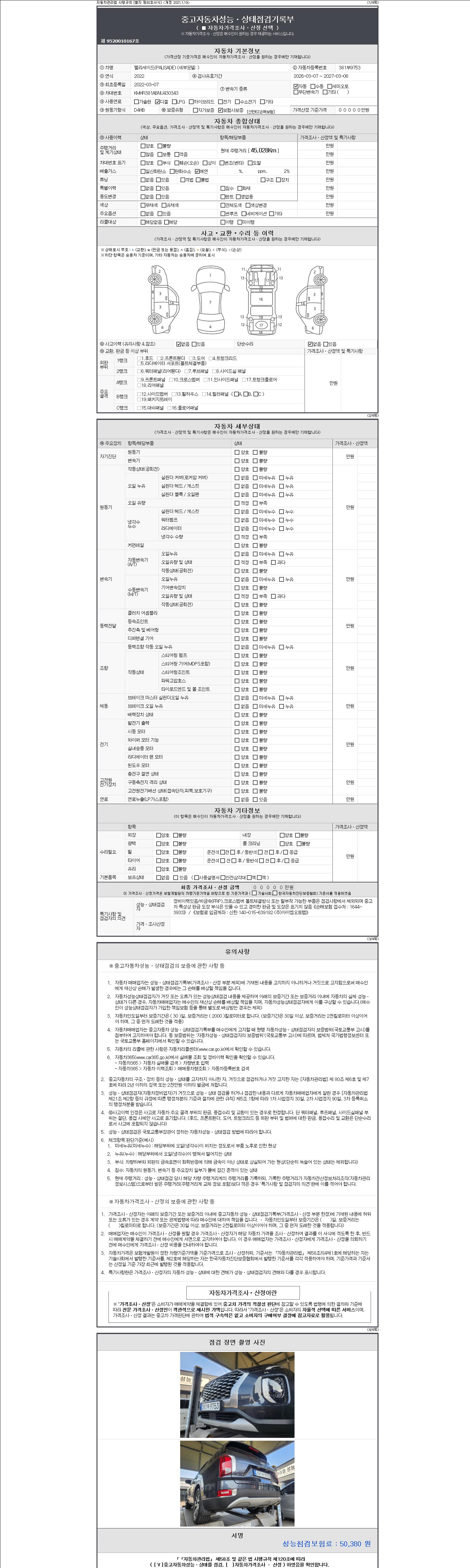 - 2. 차량 등록증이나 성능점검지 등을 상담자에게 요청및 확인하시고 사전에 미리 점검 하시기를 권유드립니다.