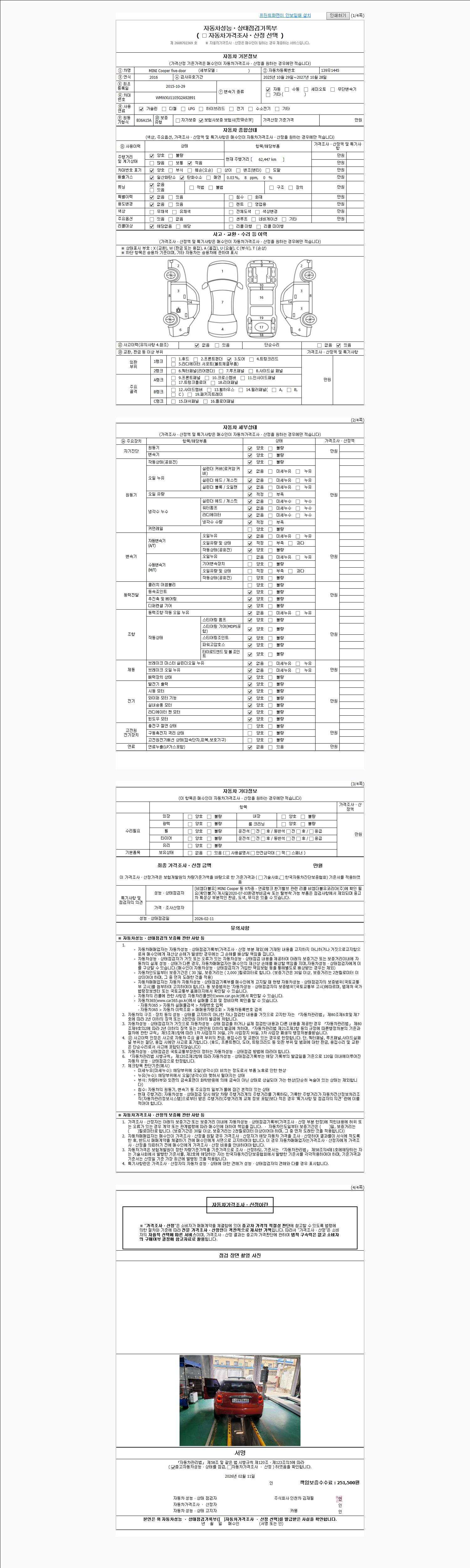 - 사고유무 : 성능기록부 참조