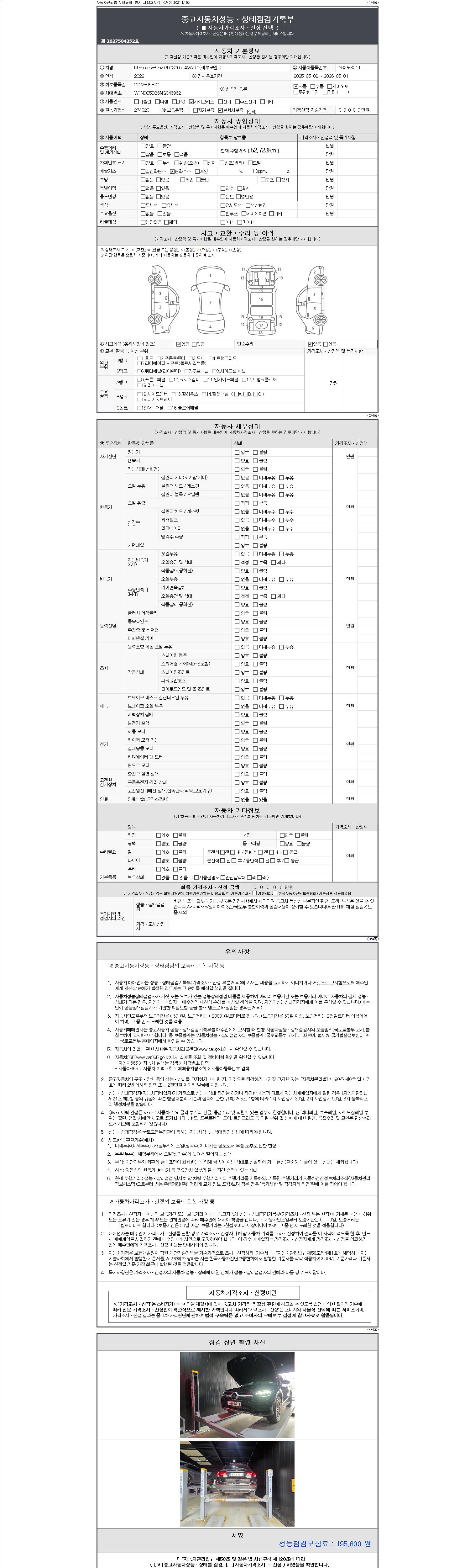 - 사고유무 : 성능기록부 참조