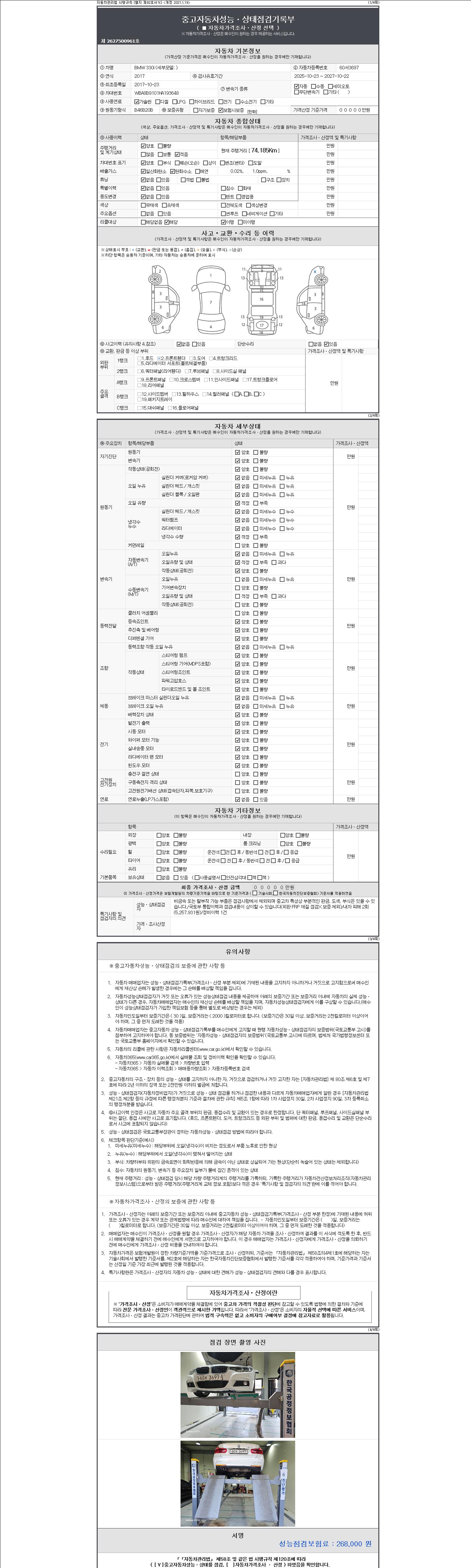- 2. 차량 등록증이나 성능점검지 등을 상담자에게 요청및 확인하시고 사전에 미리 점검 하시기를 권유드립니다.
