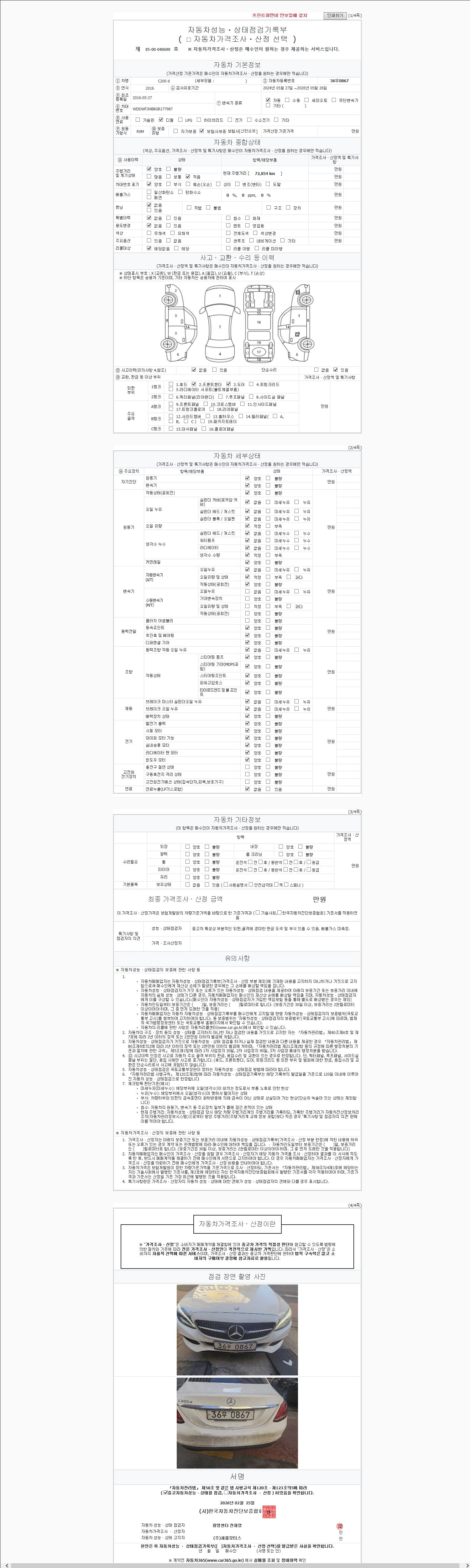 - 2. 차량 등록증이나 성능점검지 등을 상담자에게 요청및 확인하시고 사전에 미리 점검 하시기를 권유드립니다.