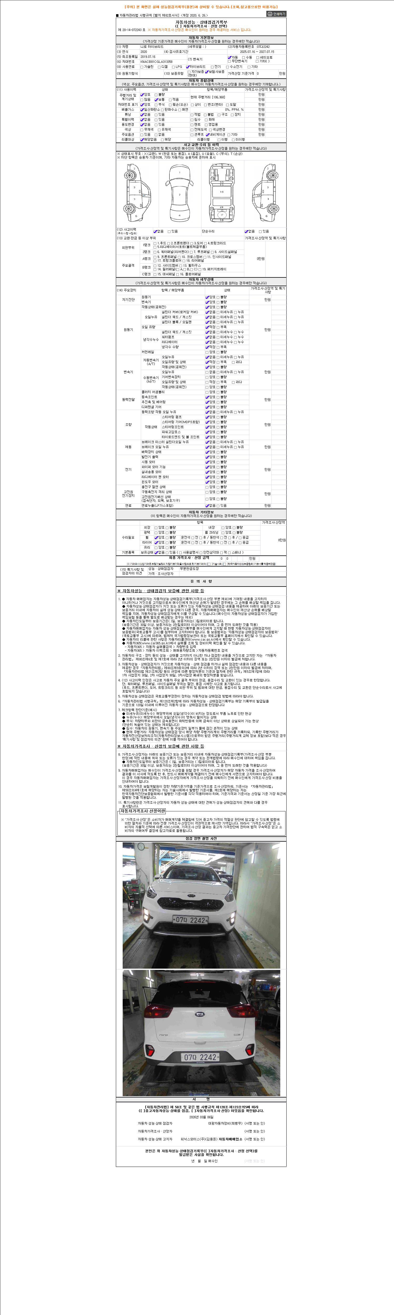 - 2. 차량 등록증이나 성능점검지 등을 상담자에게 요청및 확인하시고 사전에 미리 점검 하시기를 권유드립니다.