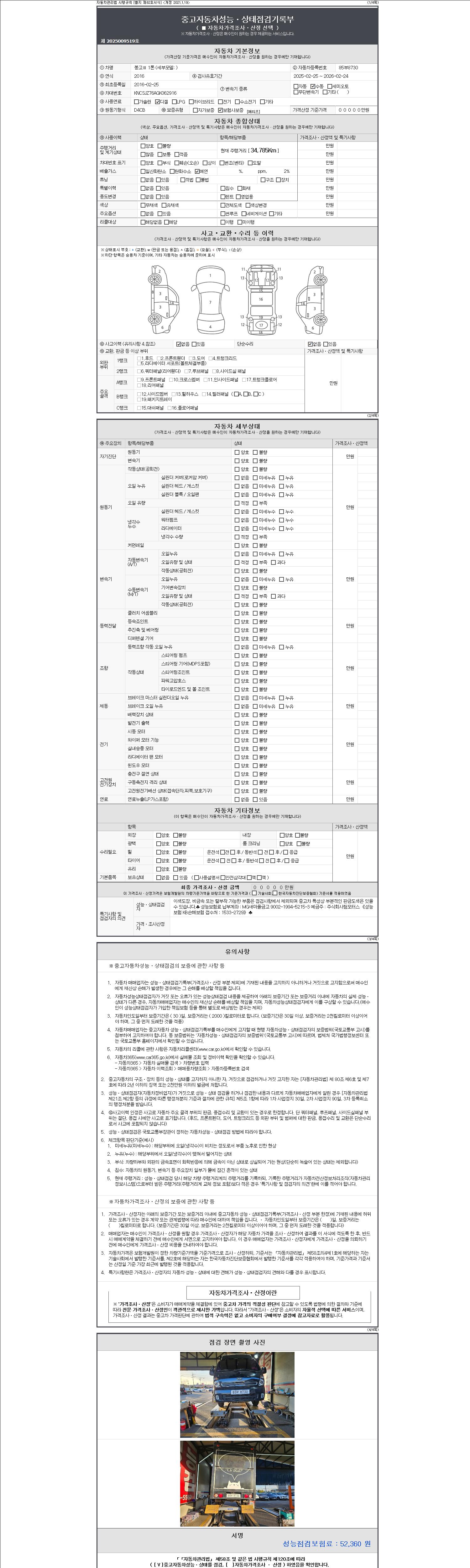 - 2. 차량 등록증이나 성능점검지 등을 상담자에게 요청및 확인하시고 사전에 미리 점검 하시기를 권유드립니다.