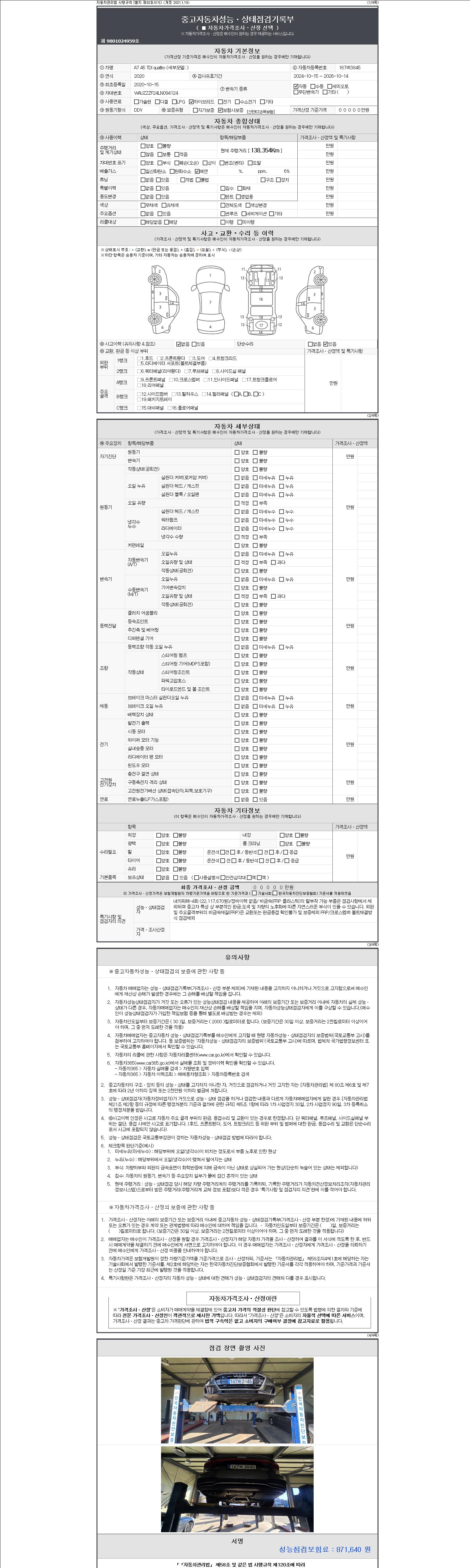 -중고자동차 매매업자를 통해 차량을 구입하실 경우 반드시 "중고자동차 성능, 상태점검 기록부"를 교뷰 받으셔야 하며, 매매업자는 반드시 의무 교부 하여야 압니다.