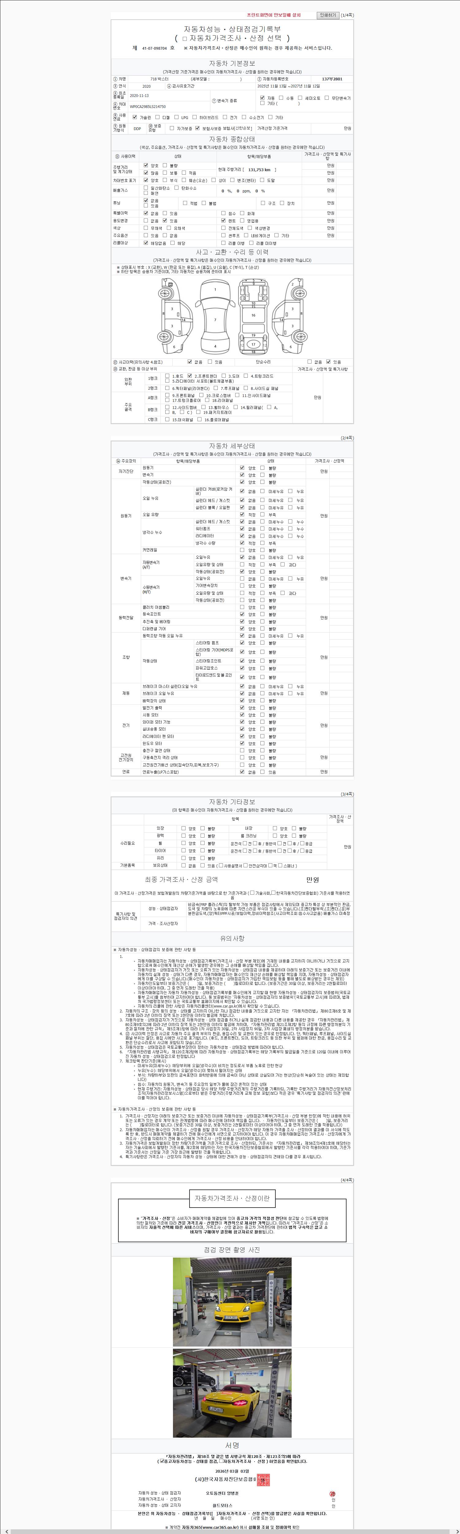 | 주행거리 | 131,753 km | 차량번호 | 137부2801 | 사고유무 | 성능기록부 참조 | 제시번호 | 제 2147483647 호 |
