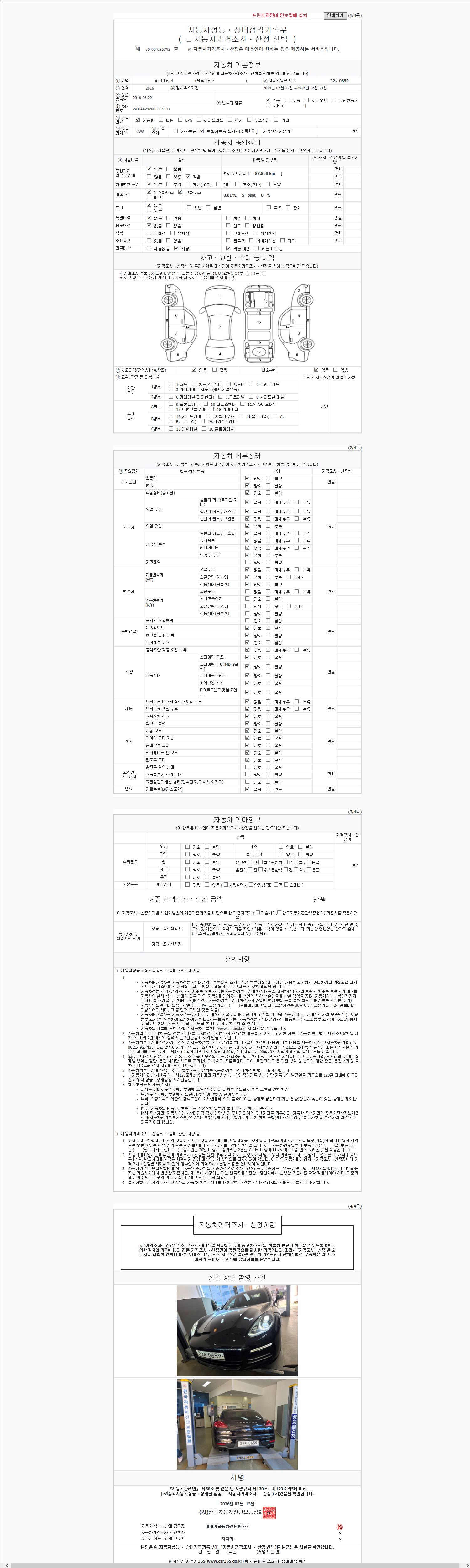 - 사고유무 : 성능기록부 참조