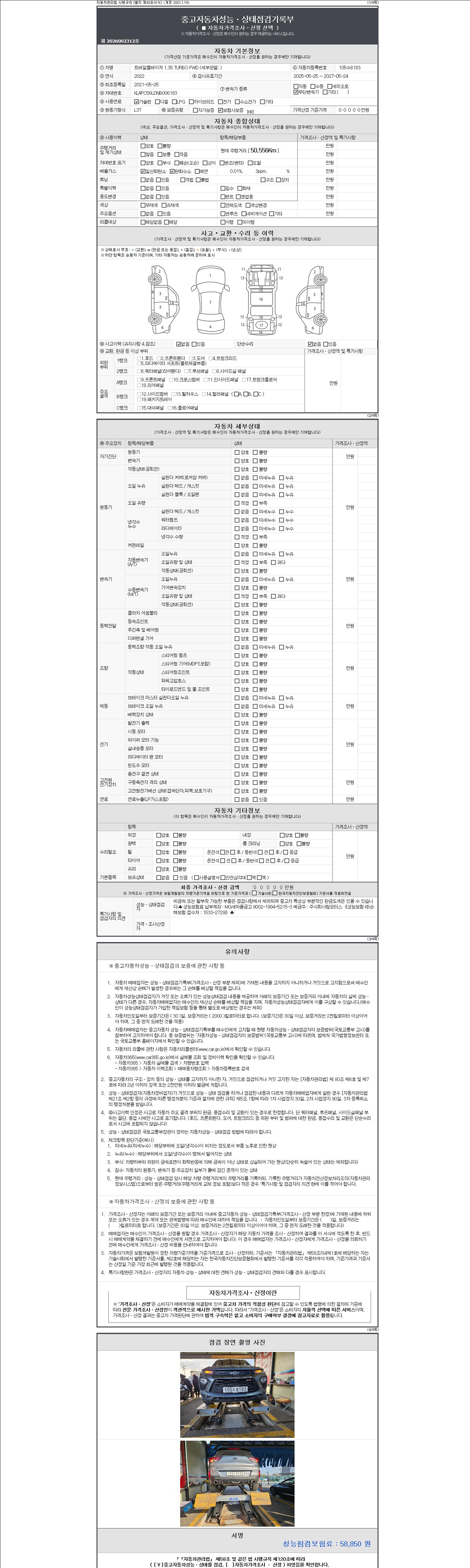 - 2. 차량 등록증이나 성능점검지 등을 상담자에게 요청및 확인하시고 사전에 미리 점검 하시기를 권유드립니다.