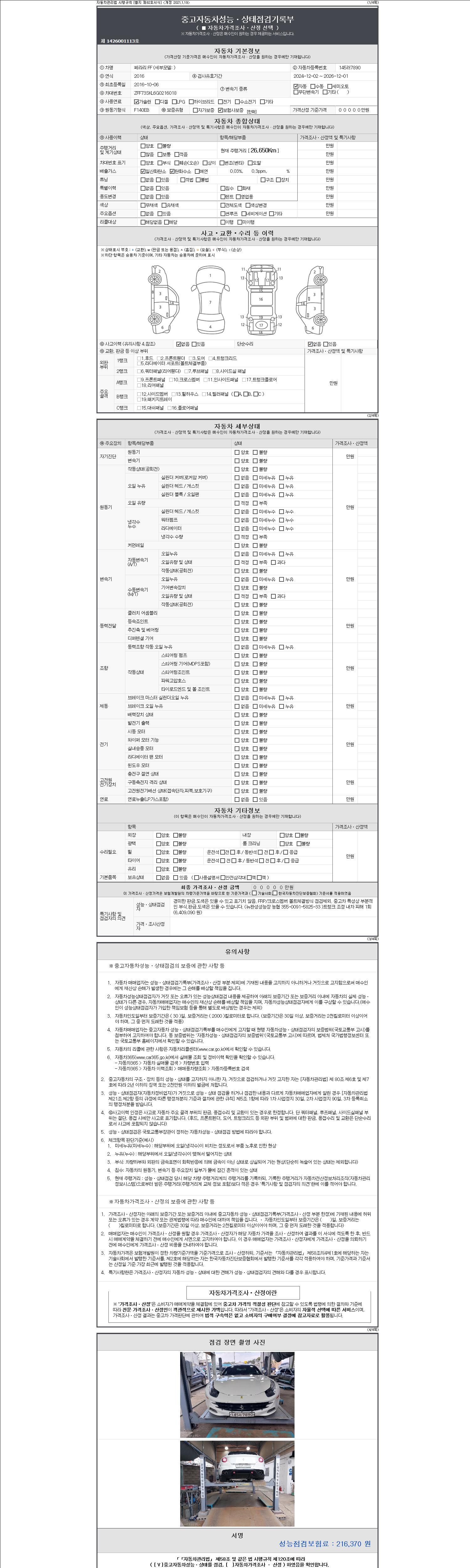 - 사고유무 : 성능기록부 참조