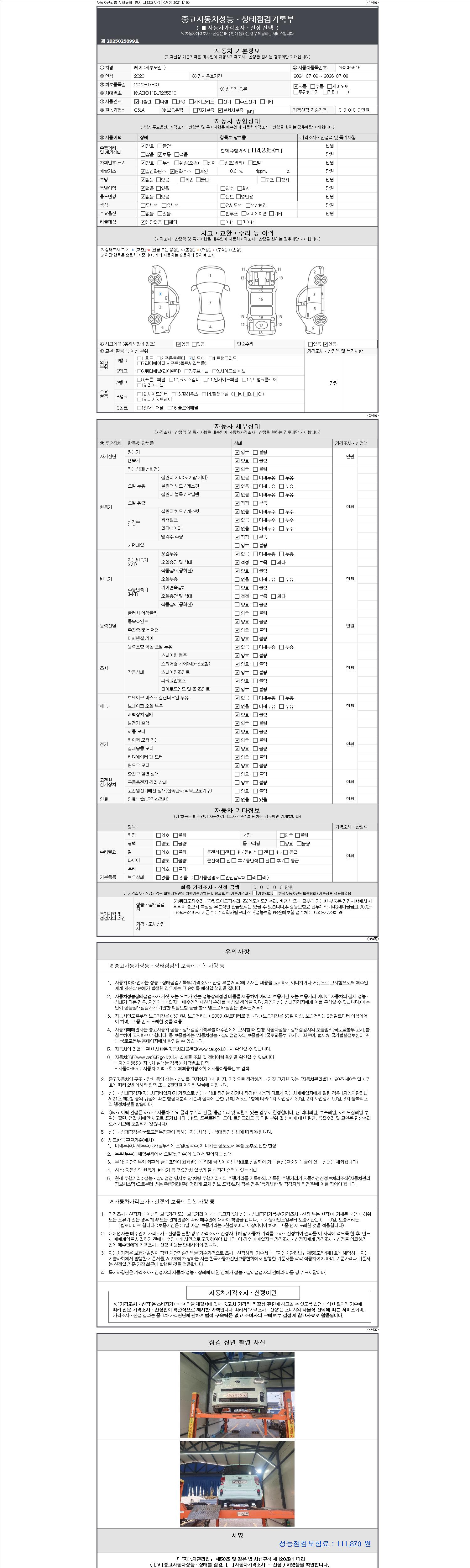 - 2. 차량 등록증이나 성능점검지 등을 상담자에게 요청및 확인하시고 사전에 미리 점검 하시기를 권유드립니다.