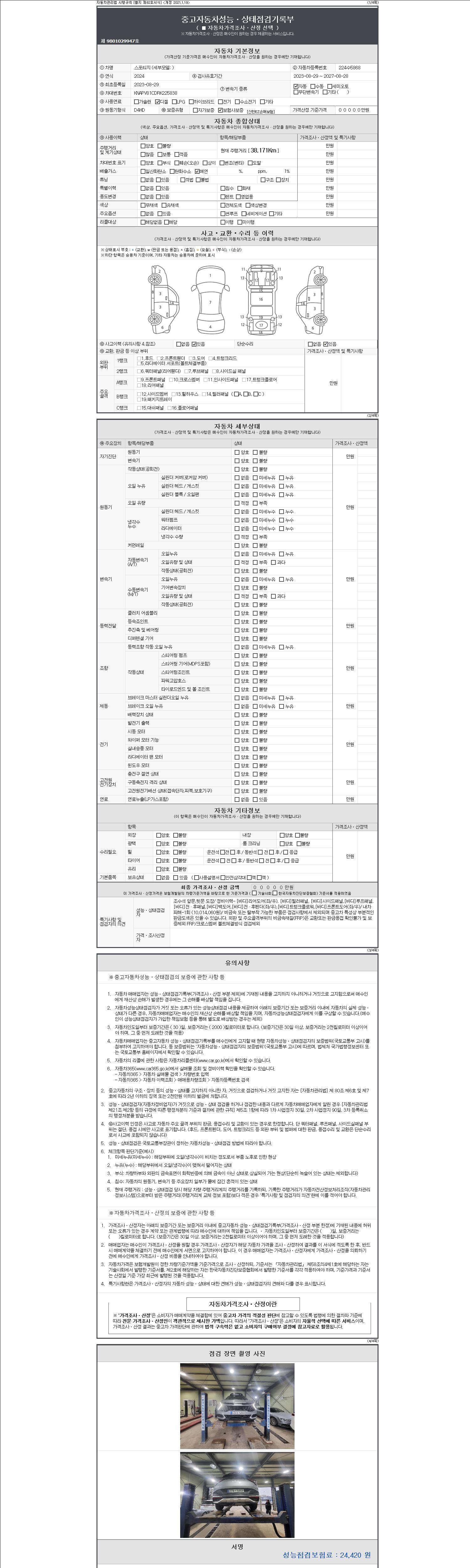 - 2. 차량 등록증이나 성능점검지 등을 상담자에게 요청및 확인하시고 사전에 미리 점검 하시기를 권유드립니다.