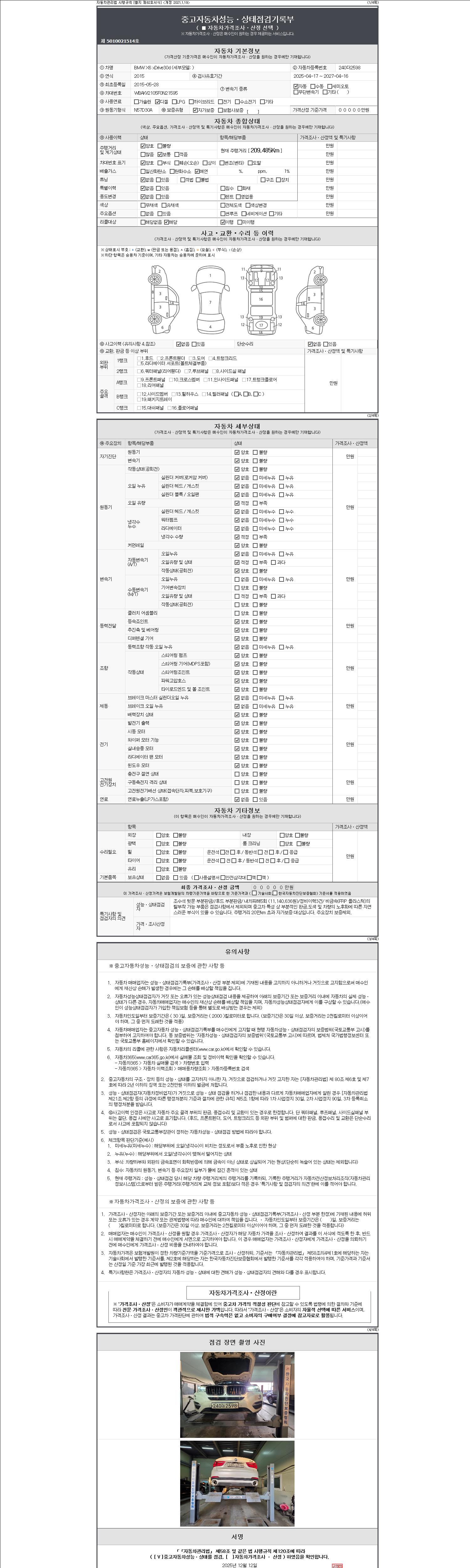 - 2. 차량 등록증이나 성능점검지 등을 상담자에게 요청및 확인하시고 사전에 미리 점검 하시기를 권유드립니다.